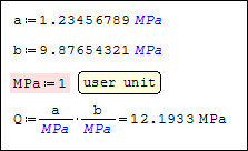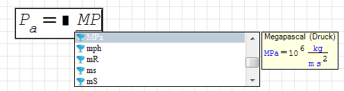 Go to the unit placeholder and type the desired result there. The dynamic assistant will help with a list of known items. In the given case it is sufficient to type MP and then TAB to confirm the selection in the list.