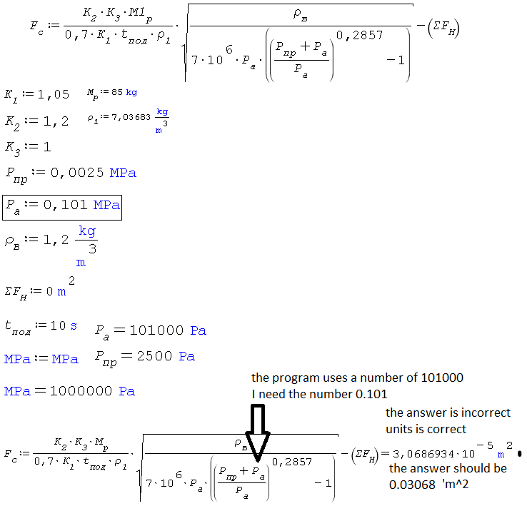 The topic starter has used units just the way it is efficient in SMath Studio. Write a formula as found in a book, define the quantities using the given units and get the result in the correct dimension.