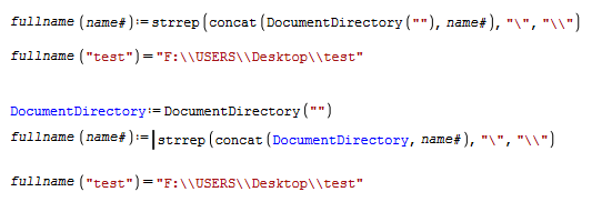 As a workaround for the case that you need to use it with inside a line statement, and given that DocumentDirectory() just use the same argument "" always, you can save it into a constant, but could have others issues, like using that with include().