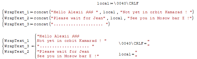 I would like to be able to enter the CRLF character directly when entering a string without functions "stack", "concat" or "sys". For example, when you press Ctrl + Shift + Enter.