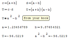 Thanks, but I want to know how to get U=(a+b )*(a-b ), even if a=1, b=2 is on the top