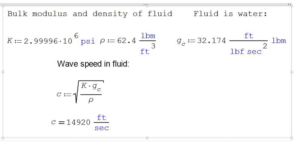 As I know, the speed of the sound into a fluid is sqrt(K/rho)=14.9245 ft/sec, for your data and where K is the fluid bulk modulus and rho the fluid density. With your rho, in lbm/ft^3, this is the fluid density. You need g only if you have the specific weight gamma = rho/g. I know that a lot of books use rho for both: density and specific weight, and it's very confusing that notation.