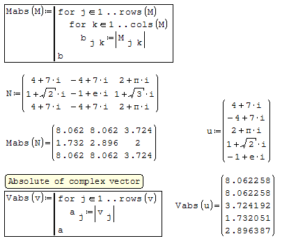 SMath Forum SMath Studio Samples Vector/Matrix Complex Utilities 1 Pages (2 items) Vector/Matrix Complex Utilities - Vector/Matrix Complex Utilities - Messages Go to last post #1 Posted: 5/30/2016 2:30:44 PM Jean Giraud 983 likes in 6,866 posts. Group: User For your tool boxJeanUtilities Matrix Complex.sm (22.16 KiB) downloaded 806 time(s). #2 Posted: 5/30/2016 2:59:10 PM Jean Giraud 983 likes in 6,866 posts. Group: User ... erata in the work sheet 1 Pages (2 items) New Posts No New Posts