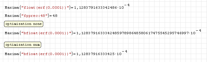 By the way, I was playing with the special functions from Maxima. It seems to work pretty well, except I do not know how to deal with small numbers - look at the picture please.