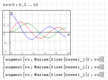 There seems to be an expression size restriction for the Maxima call. If the increment in vx in the bessel plotting example is reduced, than the evaluation process seems to hang and needs to be stopped.