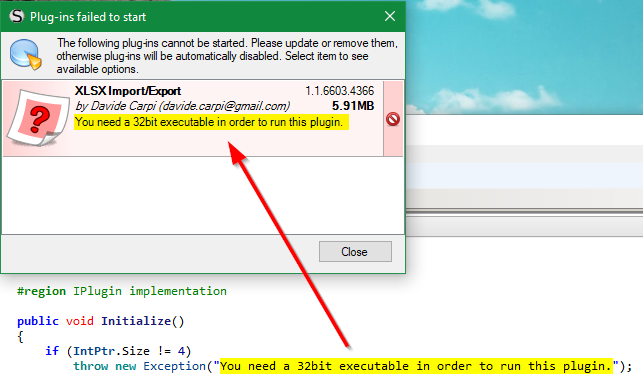 The bitness issue is typical of p/invoked libraries or external processes, something that smath can't manage automatically (except maybe introducing in the interface a flag that the plugin author can set manually to explicitly declare the plugin incompatible); however the developer can already throw an exception during the initialization to prompt the incompatibility to the user (mathcad efi f.e. has this check but it is suppressed in favor of his internal logger)