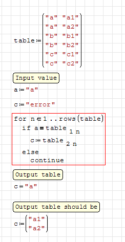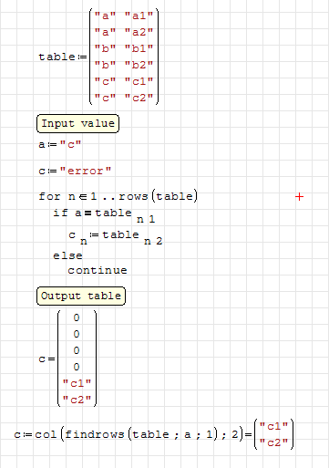 Creating a new table (matrix) from existent one - According to matching of input value and values in table create a new table - Messages