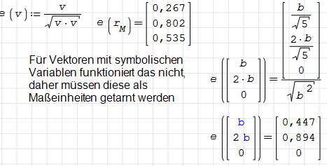 The unit workaround is also useful to enable symbolic simplifications which require the variable to be a scalar (and not a matrix), e.g. determinants and cross products. Not making this assumption in SMath is a design decision, which was explicitly confirmed by Andrey Ivashov, who actually insisted on this behaviour. Another workaround is the use of Maxima, where variables are handled as scalars unless declared otherwise.