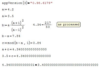 All of the above results are rationals, but only that value is represented as 4.340000...001