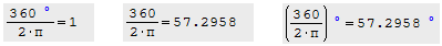 If I had wrote 360 instead of 360 degrees, then result would be 57.2958.