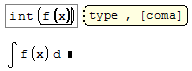 For example, to create the integral for x^2, you can type "int(x^2,x)" without quotes.
