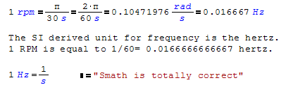 but, that is not how sMath Studio treats it. Because according to sMath Studio: 1 rpm = (2*pi/60) Hz!!! (not rad/sec)