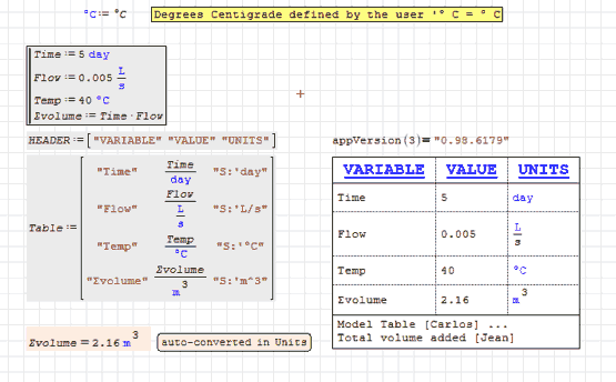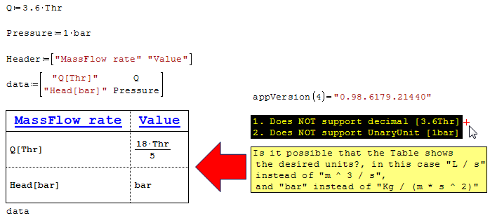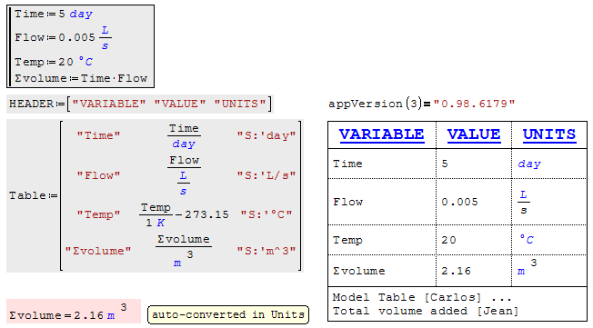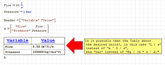 This way you don't have to cancel out units in the matrix going into the table. The "units summary" will do that for you.