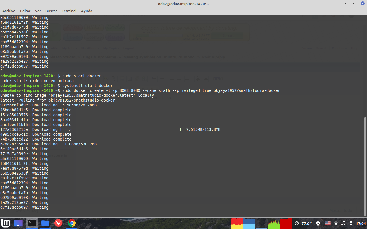 3. sudo docker create -t -p 8008:8080 --name smath --privileged=true bkjaya1952/smathstudio-docker (it would take some minutes)