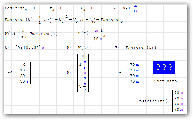 SMath Forum SMath Studio Bugs & Problems vector incorrect? 1 Pages (6 items) vector incorrect? - The values of the Pi vector, calculated for the previously defined function are invalid - Messages Go to last post #1 Posted: 8/16/2018 9:48:04 AM Puma3D 0 likes in 3 posts. Group: User However, by analyzing the individual valuesany solution? #2 Posted: 8/16/2018 10:21:46 AM sergio 116 likes in 332 posts. Group: User You must use the "vectorize" function to execute the operation element by element of the vector "ti"sergio #3 Posted: 8/16/2018 11:29:03 AM Puma3D 0 likes in 3 posts. Group: User Best regard! #4 Posted: 8/16/2018 1:37:25 PM Jean Giraud 983 likes in 6,866 posts. Group: User Wroteany solution? #5 Posted: 8/16/2018 1:42:30 PM Jean Giraud 983 likes in 6,866 posts. Group: User Cannonball project ...Maths Cannonball Copy.sm (28.19 KiB) downloaded 666 time(s). 1 users liked this postsergio 8/16/2018 1:46:00 PM #6 Posted: 8/16/2018 2:44:58 PM Puma3D 0 likes in 3 posts. Group: User Gracias.Muy Bueno! 1 Pages (6 items) New Posts No New Posts
