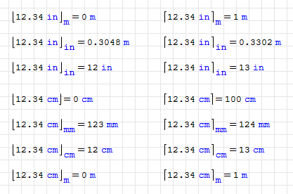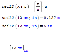 WroteDavide, thanks for developing this plugin; I use several function in here regularly. One that I just tried using that could be very useful for me is the Ceil function. In engineering we often want to always round up, so this would fit that bill well. However, it seems to only round up with respect to the base unit instead of the unit actually used. So instead of rounding a result up to the next inch (or millimeter), it rounds to the next foot (or meter). Would it be possible to account for the unit in that evaluation somehow?