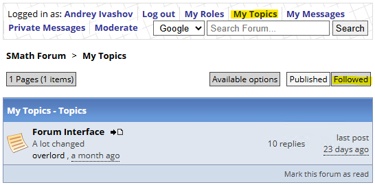 - Both English and Russian parts of the Forum now uses SMath user profile, so once you logged in on smath.com you can use the Forum as well.