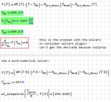 Hola Valentino. The nonlinear plugin solvers don't work because they can't get the derivative of the function. SMath's diff function does not work on functions defined in plugins, in this case coolprop. You can see that in this post: https://en.smath.com/forum/yaf_postst12504_Uneval.aspx