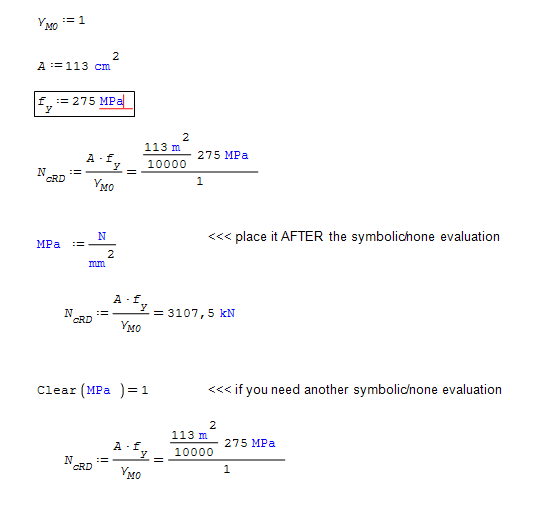 Whenever I add MPa, GPa or even kN/mm^2 SMath seems to introduce the symbol "s" to the equation which looks to be the software changing it back to kg to do the back end calculations which makes sense. It changes it to kg/(m*s^2)