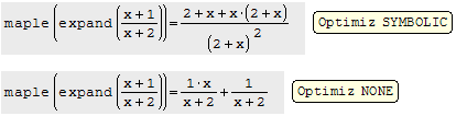 Opt = Symbolic or Opt = None means that you must to right click over an expression, and choose Optimization / Symbolic or None, not a command.