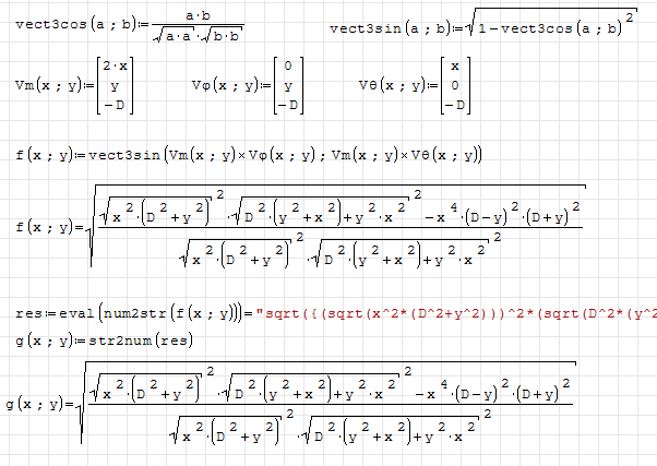 For some reason maple() and for sure some other functions take symbol definition as input. Other functions, like str2num() or wfile() use already symbolically evaluated expression (or may be they evaluate it internally?). There is no function or operator, which will say: here I want my original f(x,y) with cross products (by the way, how to write it to the file?) and here I want already symbollicaly evaluated and simplified result.