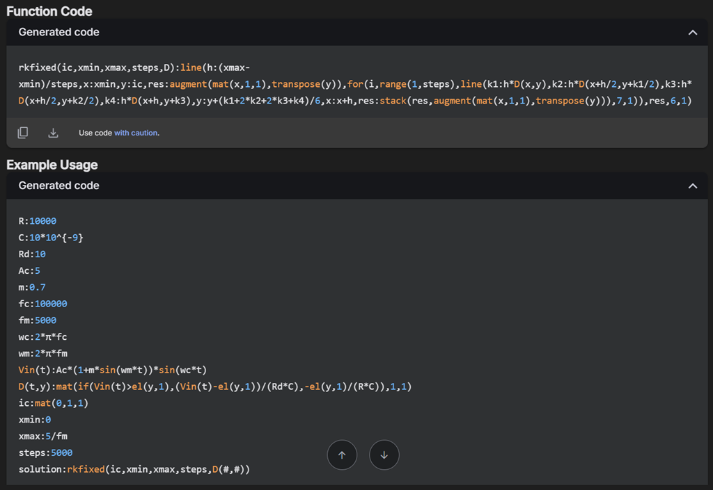 Hi Martin. You can try this code utility ( https://smath.com/en-US/forum/topic/GbopVw/Code-utility#msg137576 ) for scripting SMath functions. By relying on plain text, the AI will be able to provide some form of useful source code for basic applications.