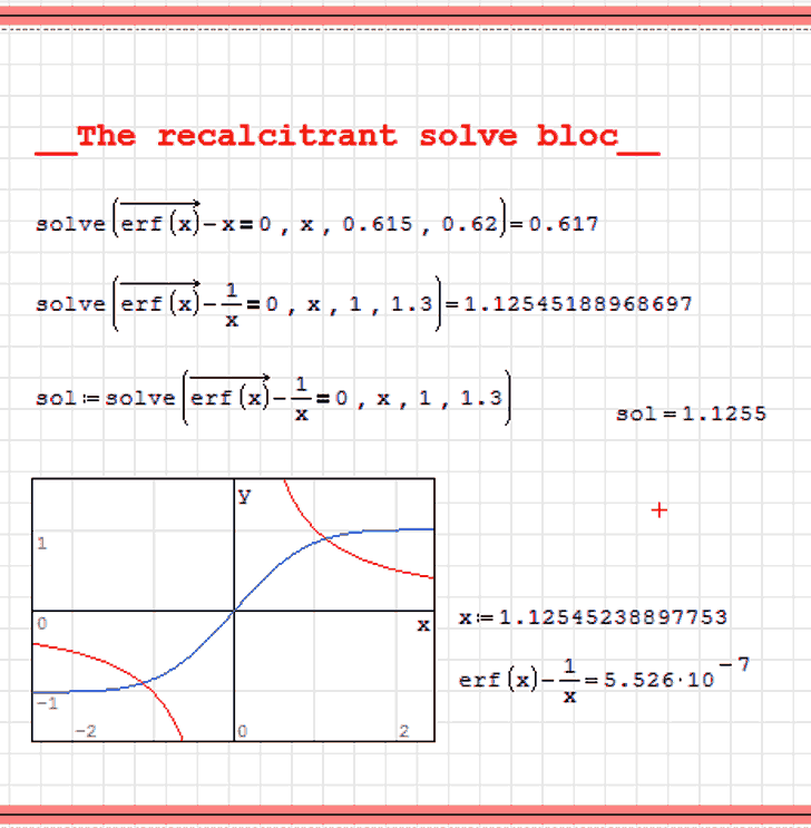 Форум SMath SMath Studio Samples The Recalcitrant erf(x) 1 страниц (3 вхождений) The Recalcitrant erf(x) - The Recalcitrant erf(x) - Сообщения К последнему сообщению #1 Опубликовано: 20.07.2017 10:58:01 Jean Giraud 983 сообщений из 6 866 понравились пользователям. Группа: User ... final version for applied maths.The solve bloc is still recalcitrant:it does not assign the solution , Ah !JeanMaths erf(x).sm (31,48 КиБ) скачан 720 раз(а). #2 Опубликовано: 20.07.2017 12:54:26 CBG 77 сообщений из 312 понравились пользователям. Группа: User Is what you mean? #3 Опубликовано: 20.07.2017 19:05:19 Jean Giraud 983 сообщений из 6 866 понравились пользователям. Группа: User Yes: Smath stores the vectorised 'sol' but does not display.Very misleading as the red says "x _ not defined".Cheers, Jean. 1 страниц (3 вхождений) Новые сообщения Нет новых сообщений