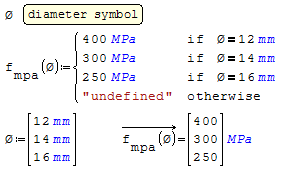 The "Mpa" is 400N/mm^2, if the variable "Diameter" is 12mm.