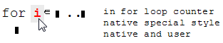 The behavior under loops is the same that you can experience on the canvas, when i is used as part of a function or of a dependant variable (a variable that contains undefined variables).