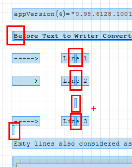 Thank you, is exactly what I was thinking. If you select all (CTRL+A) you can see some empty text region, probably created with an UNDO action (because my bad coding in the converter feature). Should be no more an issue with the coming plugin update (but if existing you have to remove them manually).