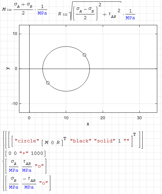 I am trying to plot mohr's circle by following tutorial. I have succeeded to draw circle on the tutorial but not mine.