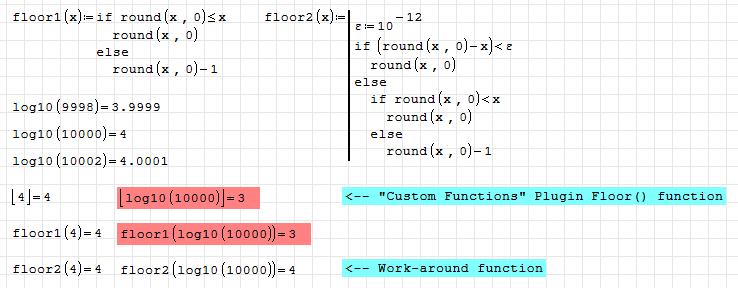However, the implementations of floor that I tried, do not return the correct value for integer powers of 10^x. As shown in my example.