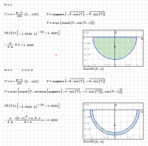 For comparison, the true value for your semi-annulus is given by 4*Reff/(3pi),