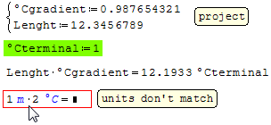 I found some strange behaviour. Let's assume two dimensionless quantity length:=10 and temp:=12. Now I multiply length * 1m and the result is 10m. However if I multiply temp * 1degC the result is error because temp is not defined? Is it some kind of a bug?