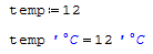 It is enough to type: temp*'°C=