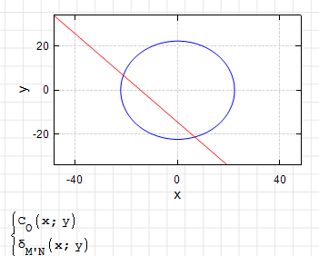 WroteGood! You tell me that there are two solutions. I agree! But in this case the roots(2) function should mention them as such. In addition, the other intersection has coordinates x=-6.72537 and y= 21.20924. As a result, I (as a technician with a specialty other than mathematics) am confused. I understand that the other solution, I have to enter it from the console, in the case of a complicated and automated calculation?! My request is that you show me another method of calculation, which will offer me a solution automatically applicable to the case in question. Automatically, meaning without my intervention from the console.