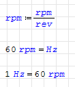 You are writing: "1 rpm = 1 rev/min = 1/60 rev/sec = 1/60 Hz". Great!