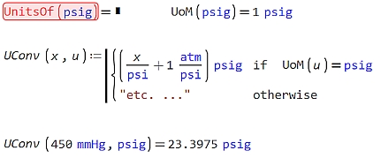 WroteNot required. Temperature is a special definition. If you want to "create" your own definition, it's simple, start with apostrophe (' )and type the new variable. A change in pressure is linear, so define it as ΔPsi:=psi. If you get into absolute values, there are equations that help define it at set elevation (I did this based on ASHRAE), but it's still linear. Hope this makes sense