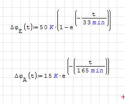 Actually, the resulting equation shouldn't operate times, but end temperatures of previous operation, to work as expected. My variant just literally fixes your implementation, but is physically incorrect.