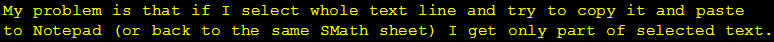 my problem is that if I select whole text line and try to copy it and paste to notepad (or back to the same SMath sheet) I get only part of selected text.