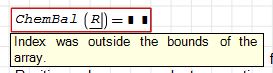 Unfortunately, when I recalculate the sheet, the ChemBal(R) fails; "Index was outside the bounds of the array"
