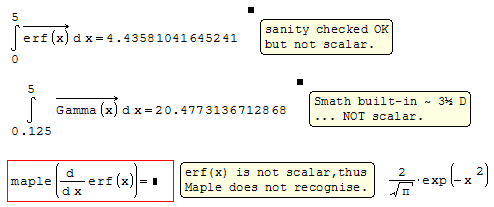 Форум SMath SMath Studio Bugs & Problems Gamma(x), erf(x) 1 страниц (1 вхождений) Gamma(x), erf(x) - Gamma(x), erf(x) - Сообщения К последнему сообщению #1 Опубликовано: 08.01.2018 01:30:49 Jean Giraud 983 сообщений из 6 866 понравились пользователям. Группа: User These two aren't scalar wrt x. Inadequate code from sourceHow many more of these very basic maths functions ?Gamma(x) is too low accuracy. The 15 D was published for designers to doctor.If you can't find, will be please to attach again.Jean 1 страниц (1 вхождений) Новые сообщения Нет новых сообщений