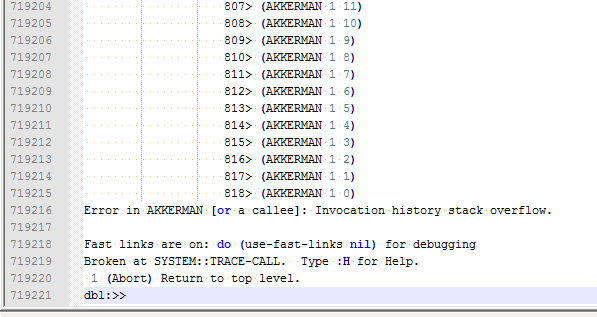 For example, akkerman(3,4) requires 4 times less operations. As bigger stack as more conses you can add to it, no matter their values. if stack is too small it causes stack overflow.