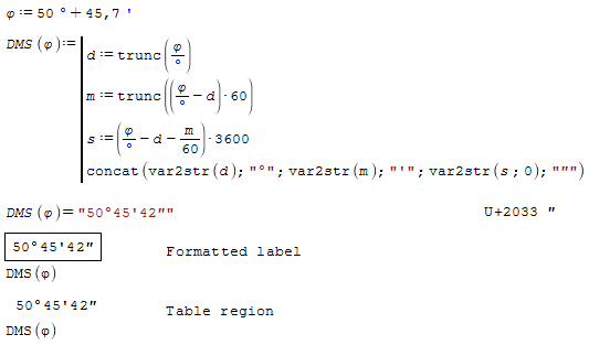 I wonder if there is a smarter way than mine to display "minutes" in a result. I did not manage to use the search function since search terms like "time" or "minute" or "angle" deliver too many results.