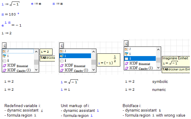 - Re-defined variable i is shown in the preview as we would like to see it in the sheet, yet in the sheet it is not italic.