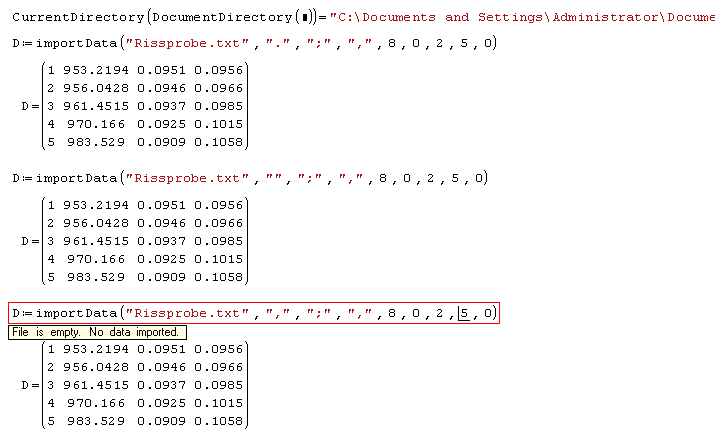 I want to read a text file using ImportData() and can't understand the effect of the dec separator setting (second argument)