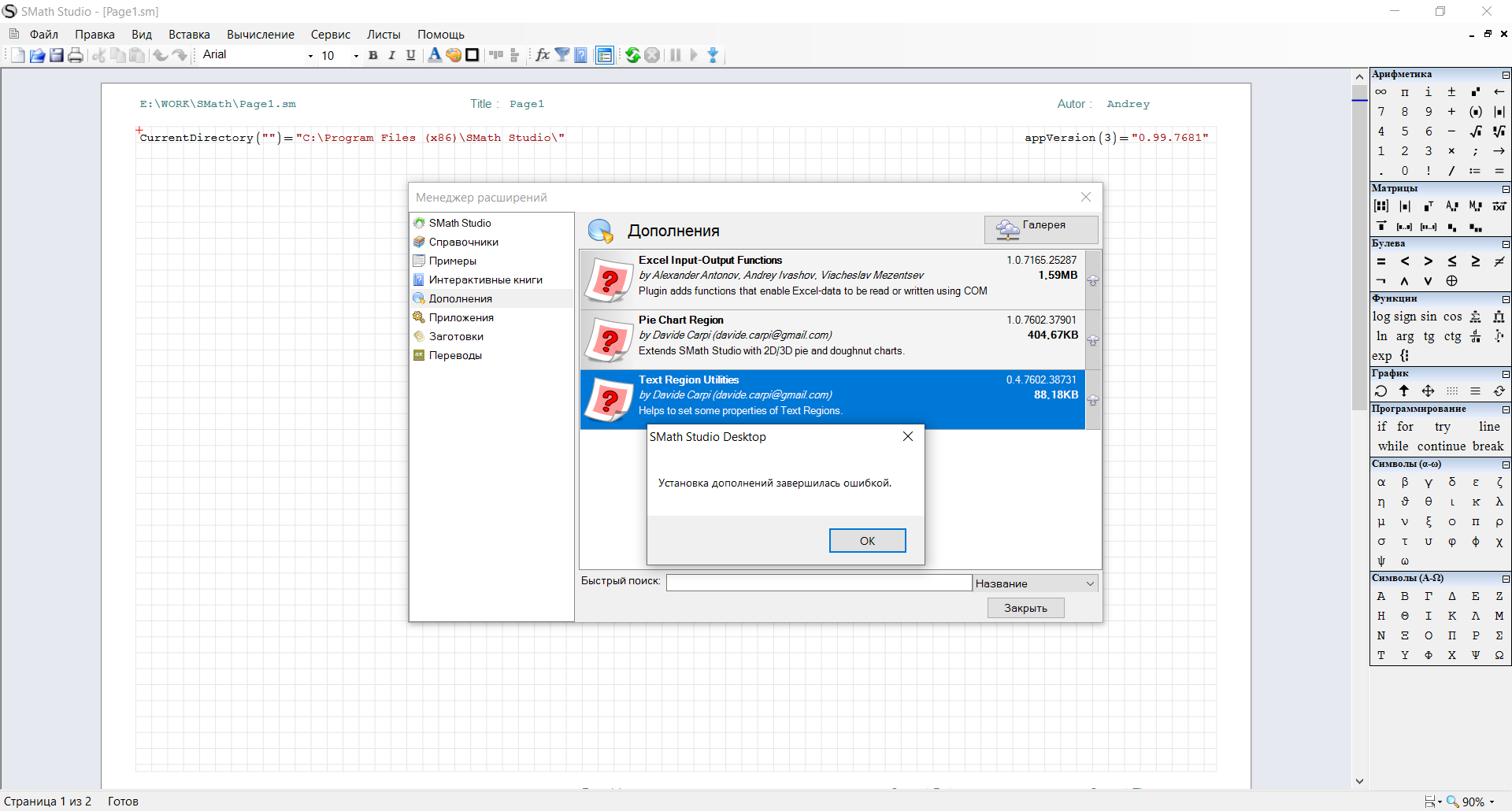 Beta: SMath Studio 0.99.7681 (11 January 2021) - Messages