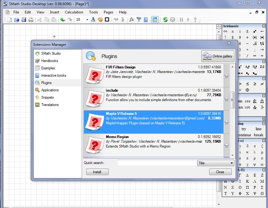 This is just a temporary solution with problems in SVG graphics display (image region issue) and partly disabled takeover of SMath functions by Maxima (SMath core feature, takeover not allowed any more for certain functions).