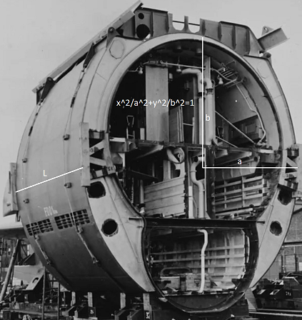 QuoteThe problem - the submarine's cross-section is an ellipse, and the bow and stern are halves of the ellipsoid.