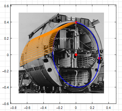 The problem - the submarine's cross-section is an ellipse, and the bow and stern are halves of the ellipsoid.